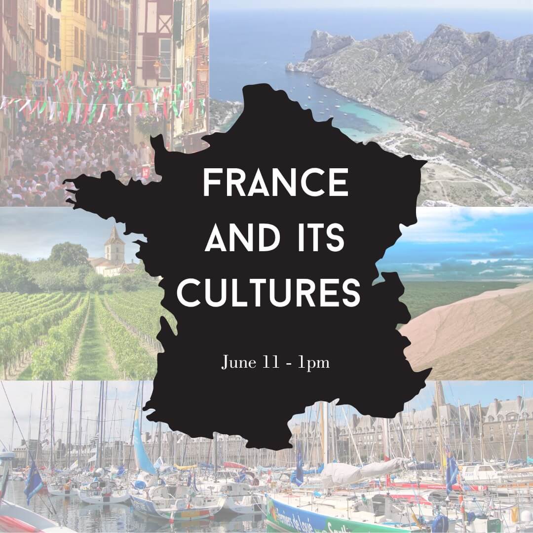 Join us on June 11 at 1pm to talk about local stories, cultures, cooking, accents and more. If you are planning a trip to France soon or if you just want to know more about French diversity, this conversation is for you!